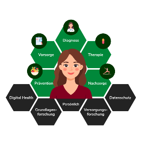 - In enger Zusammenarbeit mit Kliniken und Gesundheitseinrichtungen verbinden wir grundlegende methodische Forschung mit der Entwicklung praxisnaher Lösungen, von theoretischen Konzepten bis hin zu alltagstauglichen Anwendungen und Prozessoptimierungen.